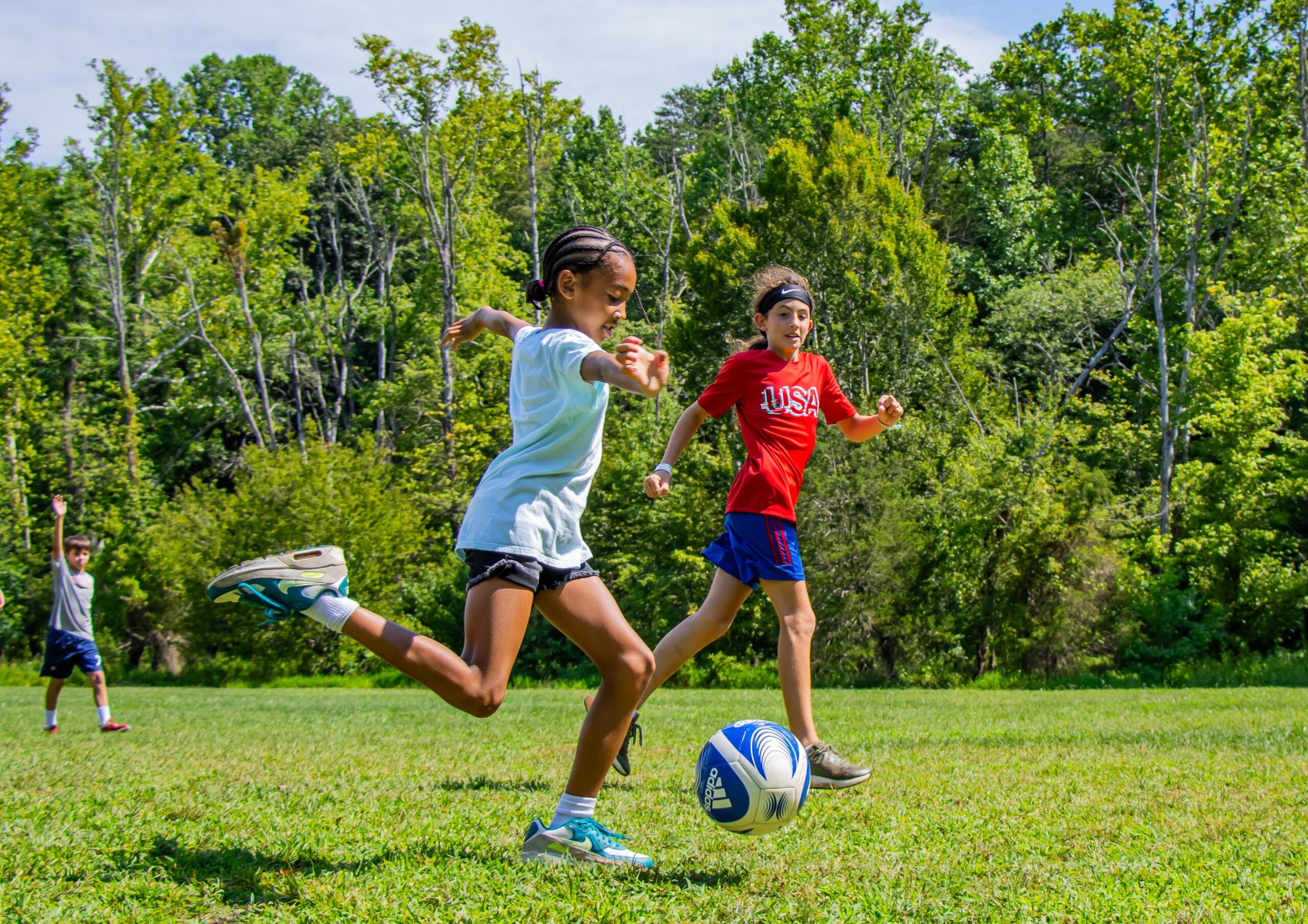 Learn to master the most popular sport in the world on Camp Friendship’s athletic fields! Campers learn the techniques of shooting, dribbling and passing through enjoyable drills and games. You will also practice skills in mini-matches throughout the week.